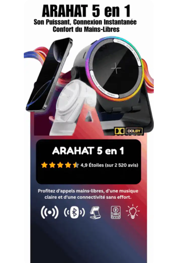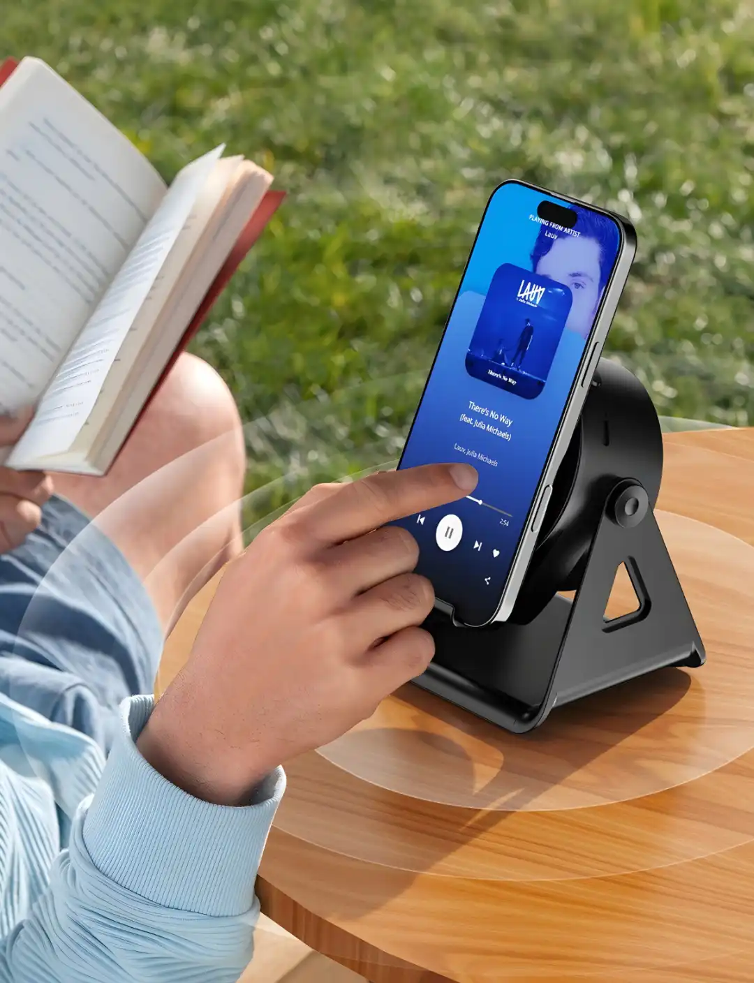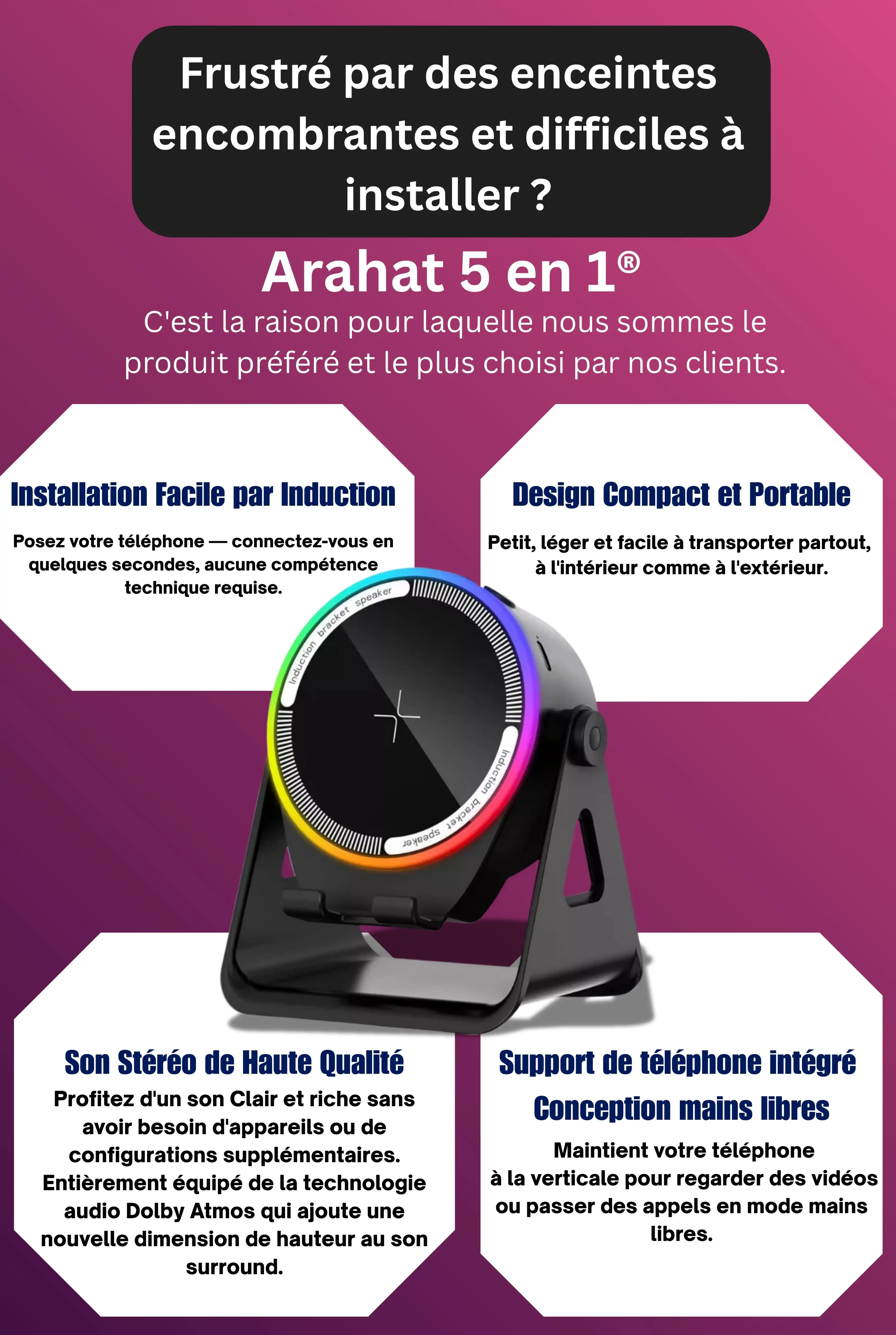 Avec Arahat, posez simplement votre téléphone et profitez d'un son plus riche et plus clair en quelques secondes. Pas d'appairage. Pas de délai.